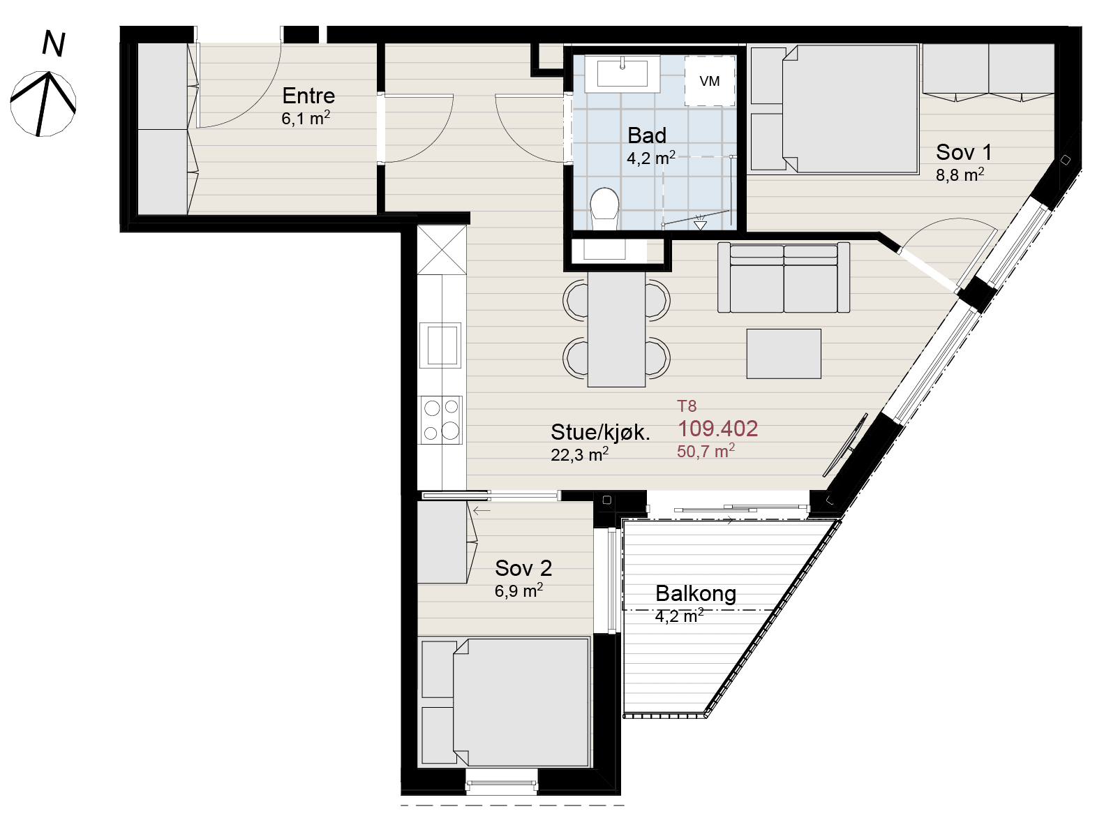 Leiligheten har oppgradert kjøkken, kontakt megler for informasjon.